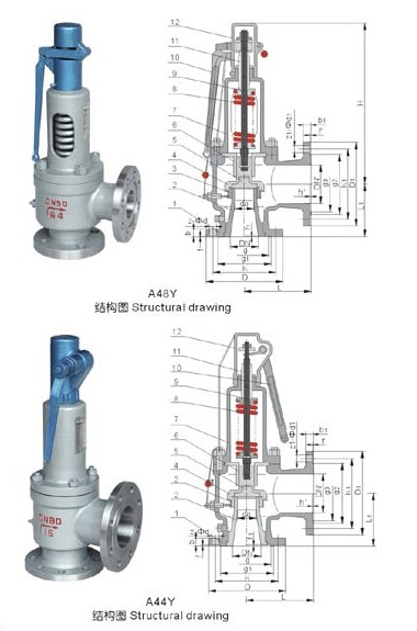 A44Y帶扳手彈簧全啟式安全閥適用于工作溫度≤300℃的空氣、石油等介質的設備或管路上,作為超壓保護裝置。