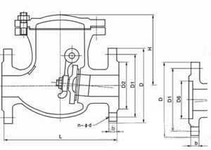 H44N天然氣旋啟式止回閥采用內裝搖臂旋啟式結構,閥門的所有啟閉件都裝于閥體內部,不穿透閥體,除了中法蘭部位用密封墊片和密封環外,整體沒有外漏點,杜絕閥門外泄的可能。密封面采用彈性尼龍材料或聚四氟乙烯,提高了密封性能,避免因介質壓力的沖擊而所產生的靜電火花。