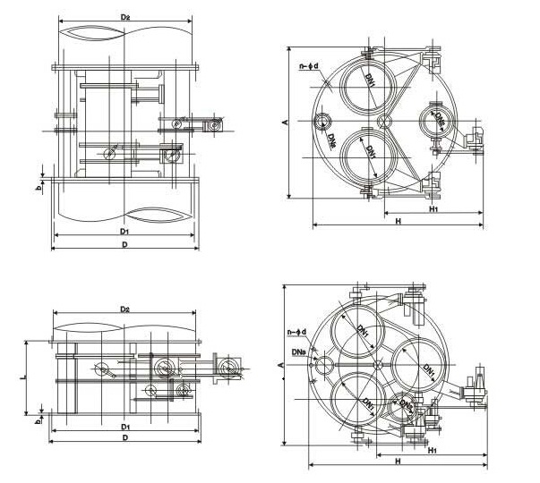 閥組型號 | D | D1 | L | b | n-Φd | A | A1 | H | H1 | 閥門配制 | 許用流量(m3/h) | 重量(kg) | 對應(yīng)管道 |