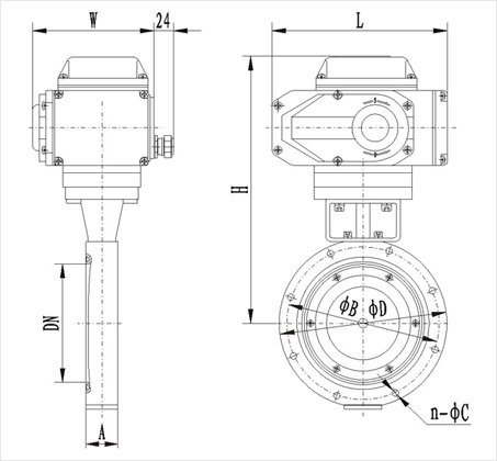 型號 | 通徑(DN) | ΦD | ΦB | H | A | L | W | n-ΦC |